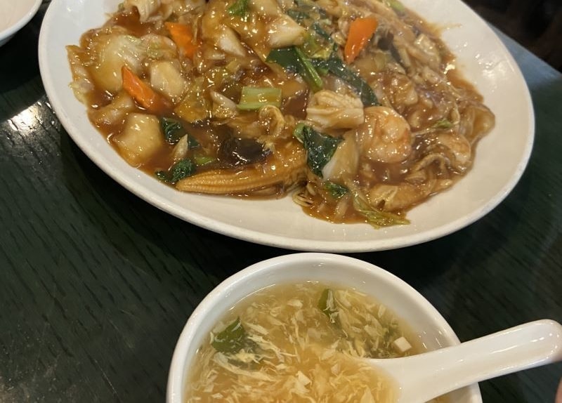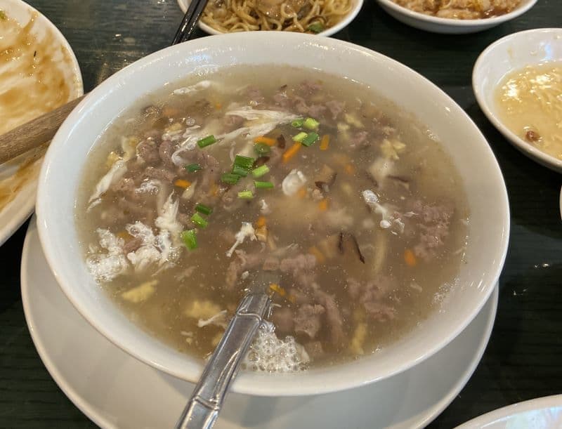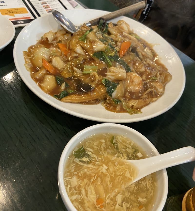 注文したのは海鮮蛋包、海鮮炒麺、牛肉スープです。