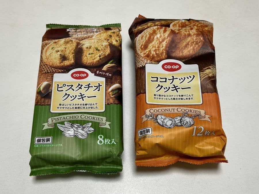 2月にも紹介したイトウ製菓小美玉工場の製品ですが、生協(coop)さんとココナッツクッキーやピスタチオナッツクッキーを出していました。